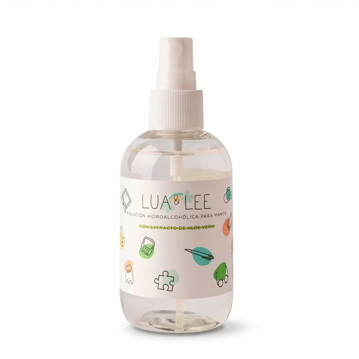 Gift box of the Lua & Read. Lua & Lee mainly contains cologne in a 100 ml glass bottle , with a wooden stopper. Its scent is our most precious treasure, tender, subtle and wonderful. Made with essence of sweet lemon, neroli, petit grain and musk. Dermatologically tested and low in alcohol, it contains 30% alcohol, enough to not need preservatives, but the essential minimum so that it does not dry out the skin. We have added organic orange water to its formula, which has moisturizing properties. When the cologne is finished, the elements of the container can be separated and everything recycled appropriately.In addition, inside the box you will find a hydroalcoholic spray. It is in 100 ml format so that the kids can carry it with them to school in a satchel or backpack, or in mum's bag, or the car... This hydroalcoholic solution is perfect for quick hand cleansing, and you can even use it to clean objects. The container comes with a vaporizer and can be applied directly to the hands- no rinsing needed. It is scented with the Lua & Lee, fragrance, with sweet lemon and white flowers.Finally, you will find a surprise gift for parents or kids. A mini pocket mirror from Lua & Lee, decorated with Lua the mother cat.